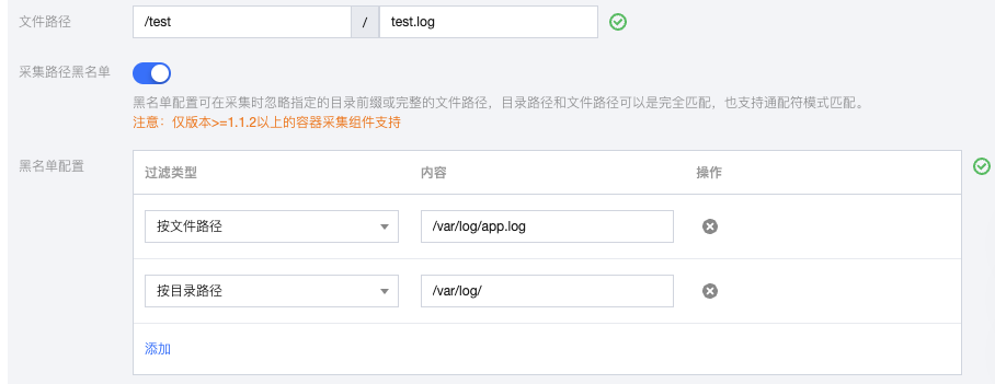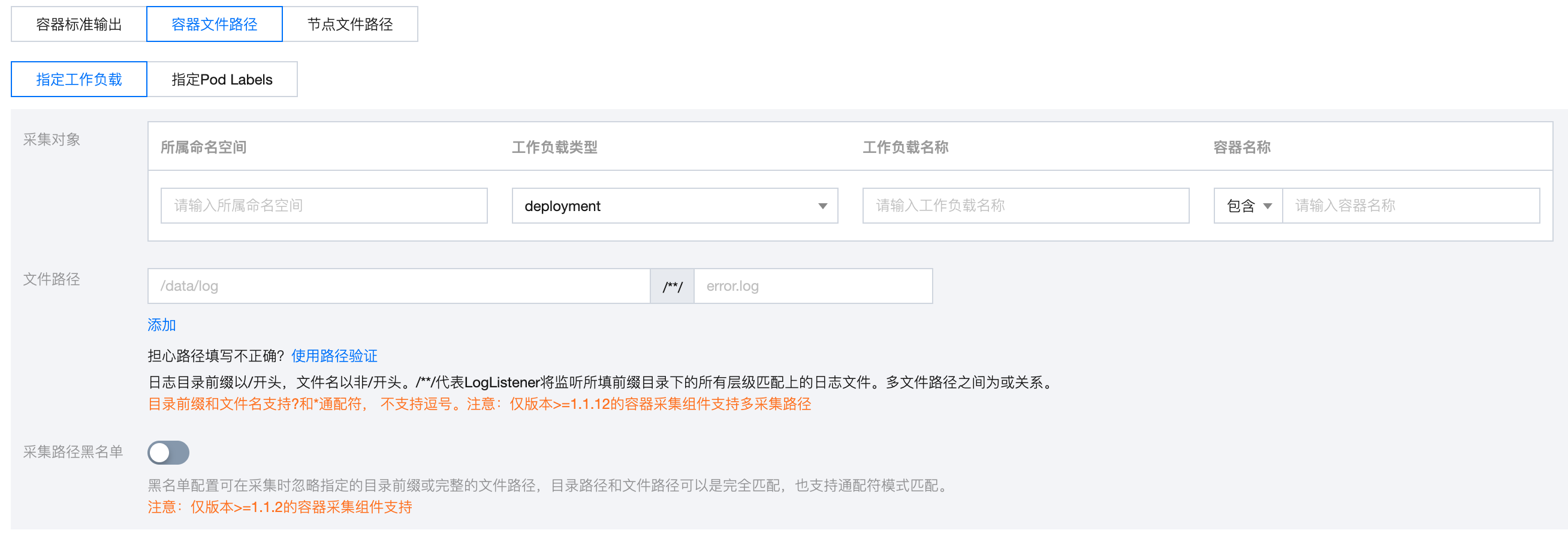 /opt/logs/*.log,可以指定目录前缀为 /opt/logs,文件名为 *.log的日志。