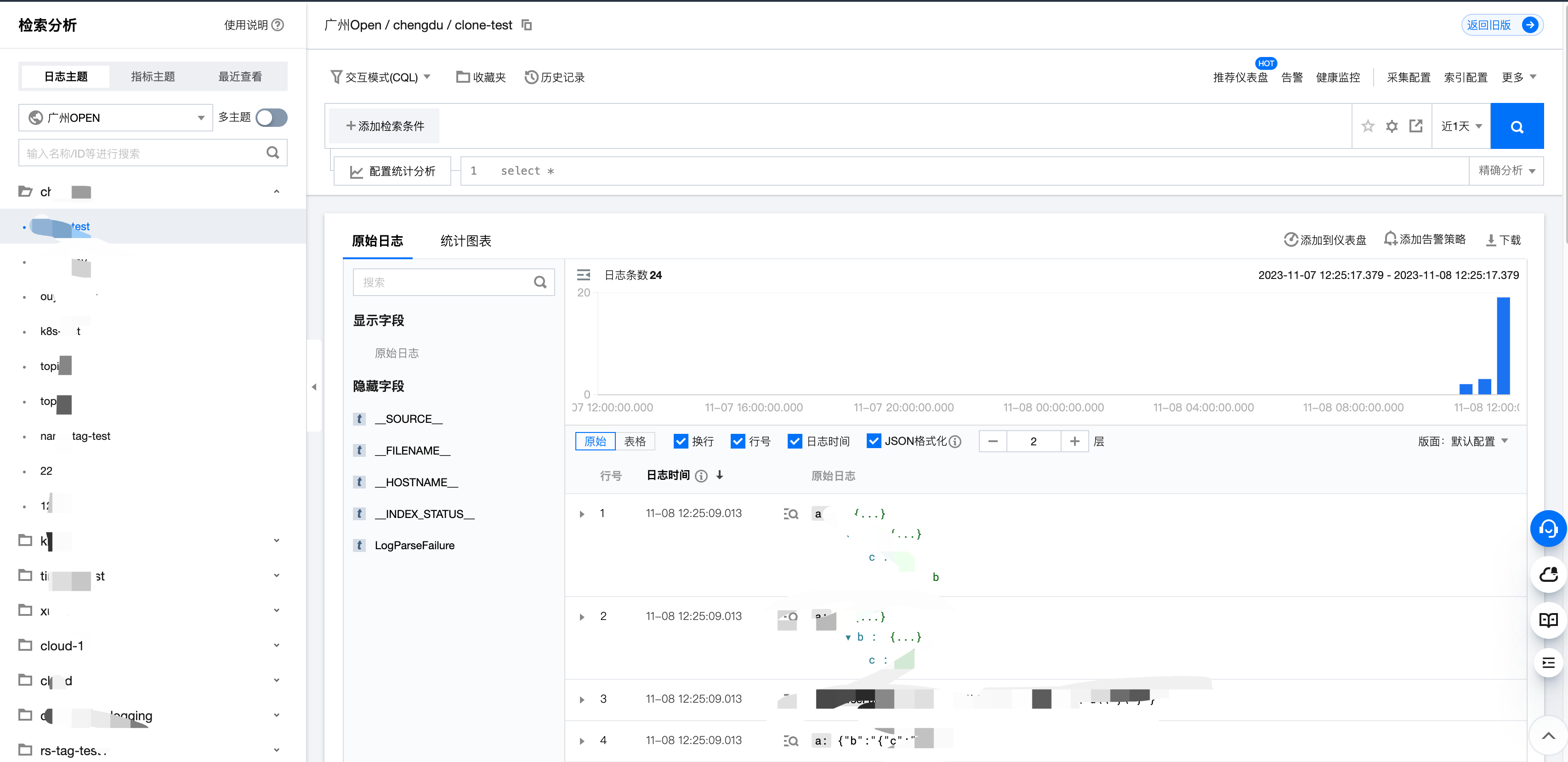 :::,该条日志会被分割成八个字段,并为这八个字段定义唯一的 key,如下所示:IP: 10.20.20.10 -bytes: 35host: 127.0.0.1length: 647referer: http://127.0.0.1/request: GET /online/sample HTTP/1.1status: 200time: [Tue Jan 22 14:49:45 CST 2019 +0800]