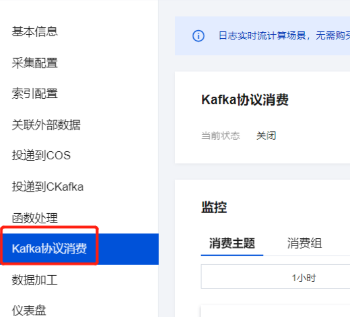 1. 登录 CLS 控制台,在日志主题管理页中,找到需要被迁移或同步的 a 日志主题,单击 a 日志主题的名称进入日志主题详情页。 2. 在日志主题详情页中,选择 Kafka 协议消费页签,如下图所示: