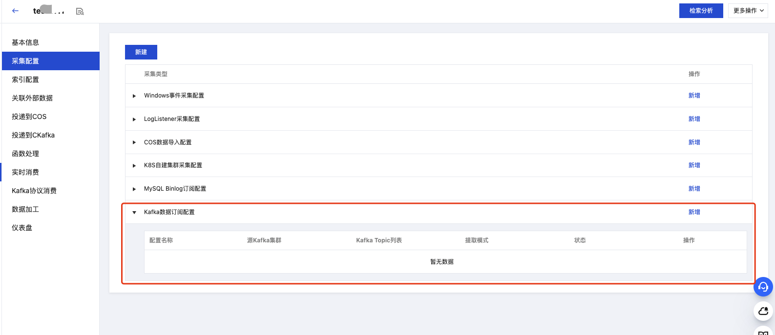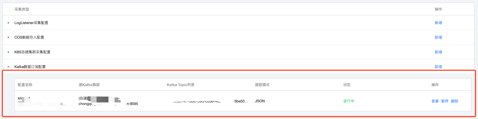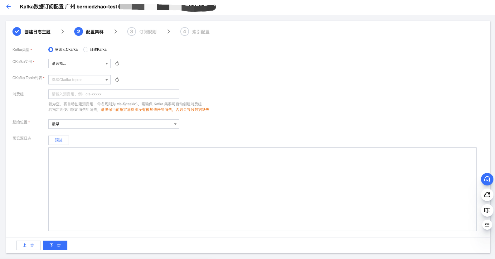 消费组 | 否 | 若为空,将自动创建消费组,命名规则为 cls-${taskid}。若不为空,则使用指定的消费组消费。 注意: 若为空,确保 Kafka 集群可自动创建消费组。 若不空,请确保当前指定消费组没有被其他任务消费,否则会导致数据缺失。 |