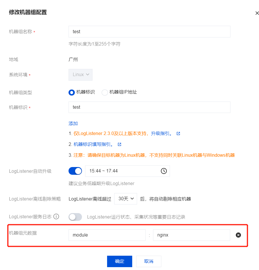 __TAG__.{机器组元数据键}:{机器组元数据值} 的形式上传至日志服务。