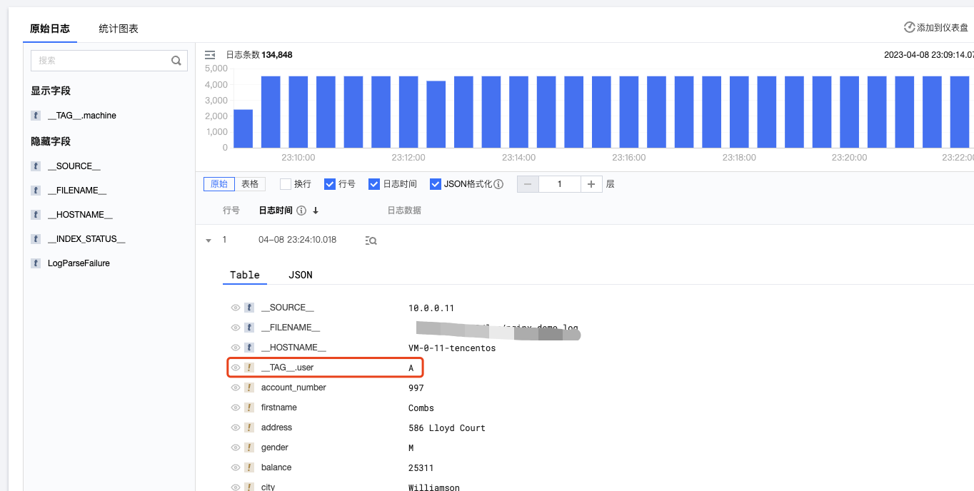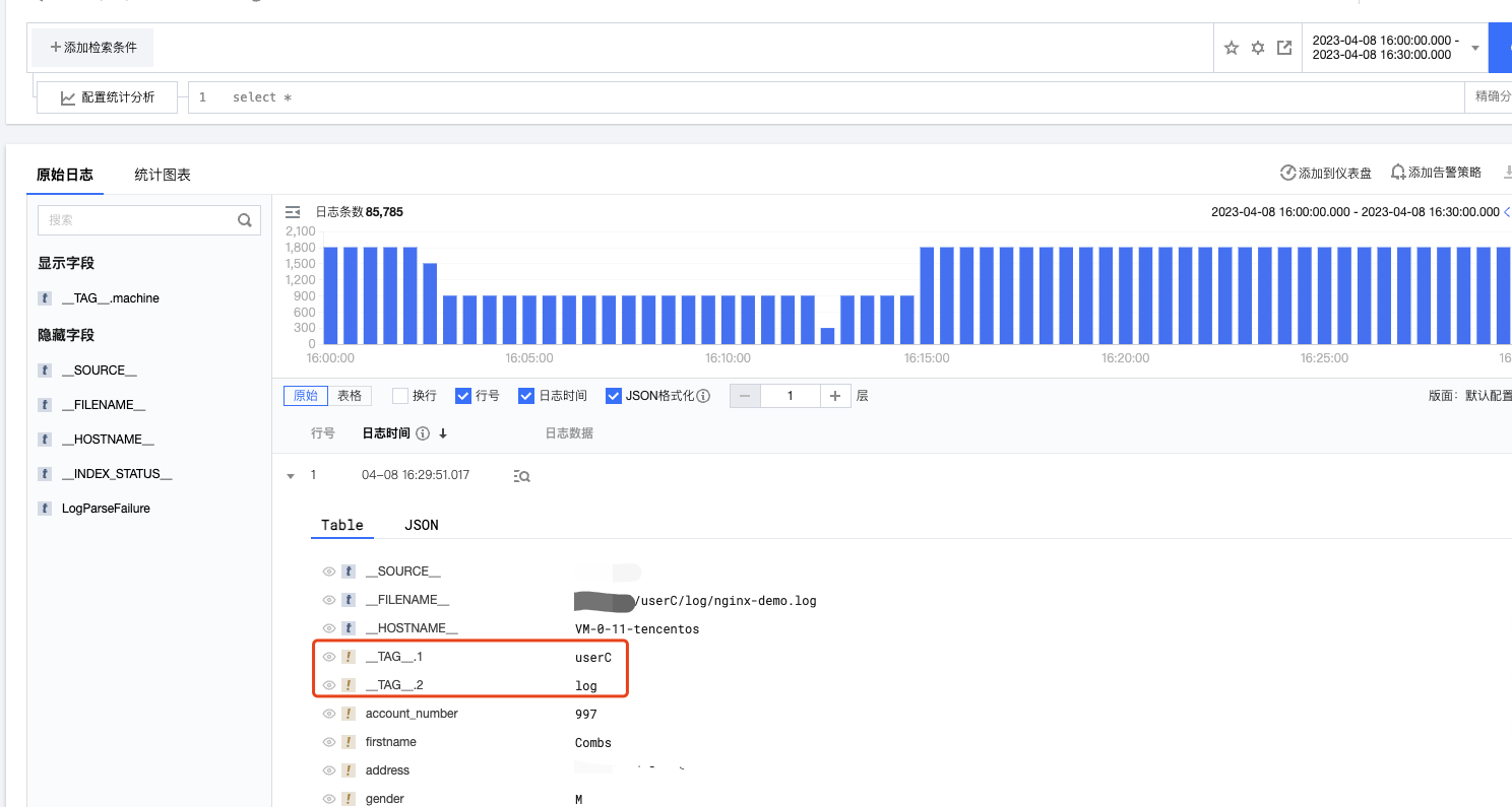 # /logs/appA/userA/access.log 中的日志将新增键值__TAG__.APP: appA__TAG__.USER: userA# /logs/appB/userB/access.log 中的日志将新增键值__TAG__.APP: appB__TAG__.USER: userB# /logs/appC/userC/access.log 中的日志将新增键值__TAG__.APP: appC__TAG__.USER: userC