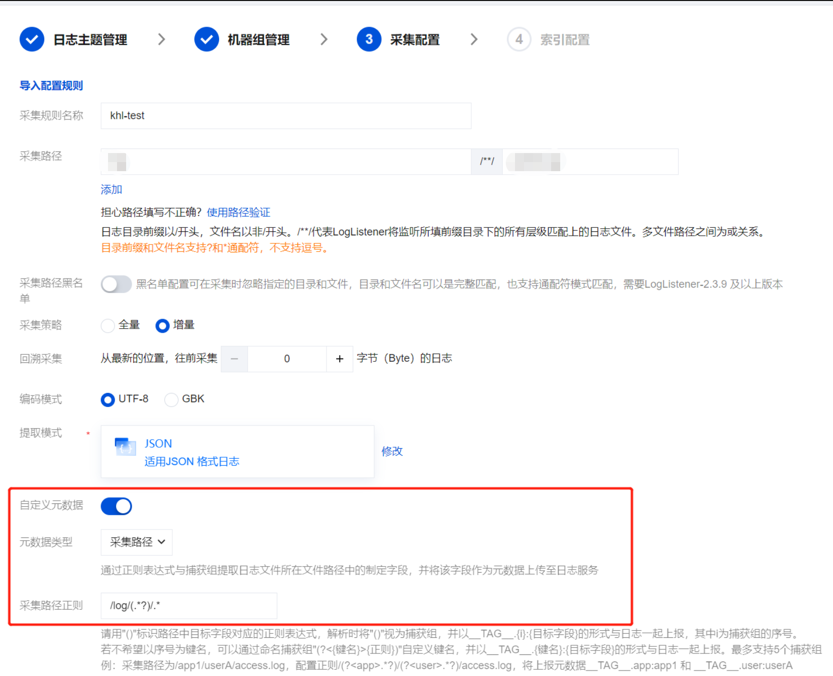 __TAG__.{i}:{提取字段} 的形式与日志一起上报,其中 i 为捕获组的序号。最多支持5个非命名捕获组。