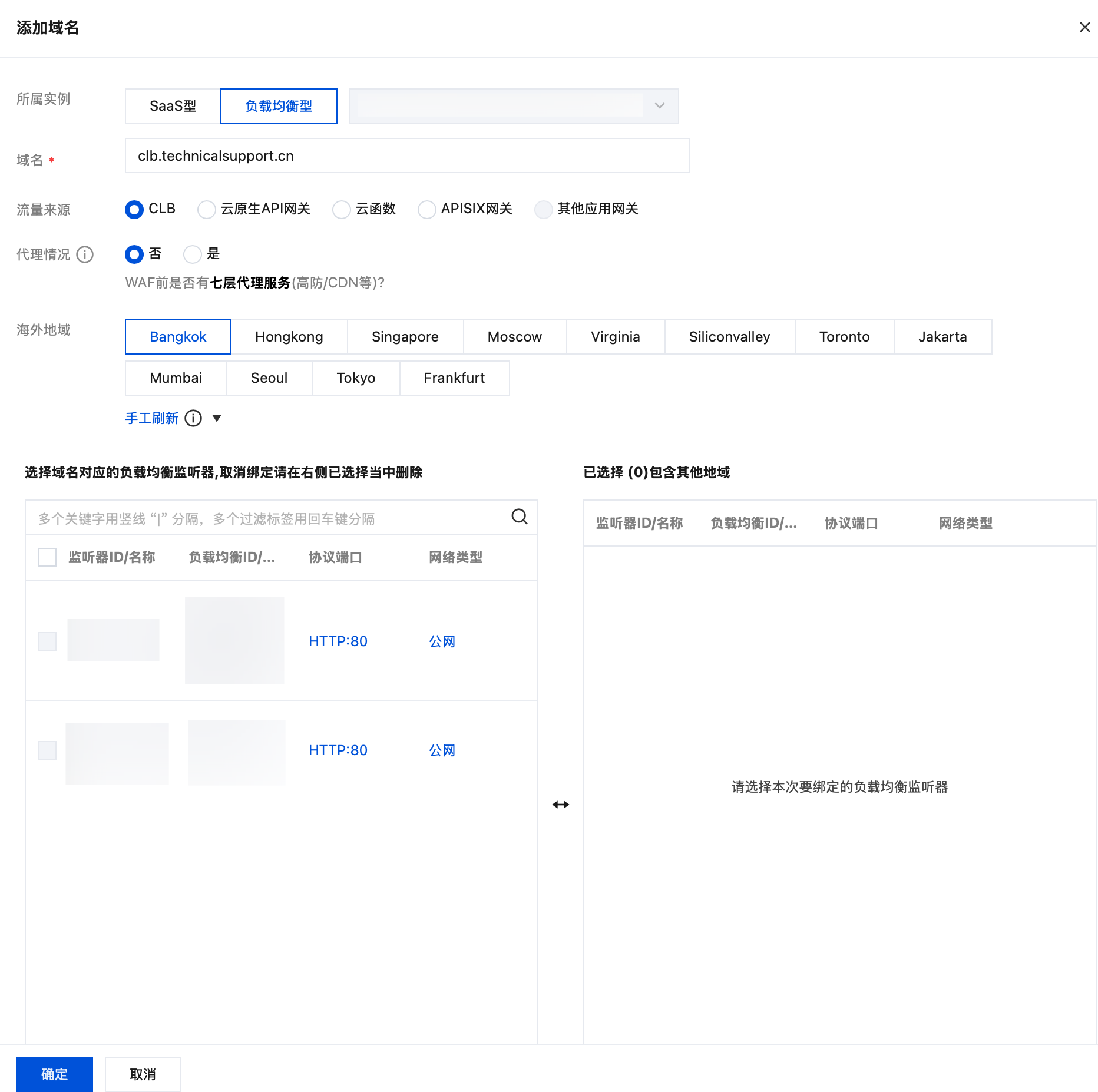选择域名对应的负载均衡监听器:根据实际需求选择。