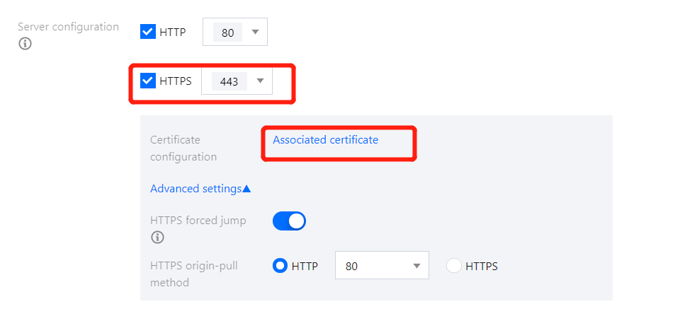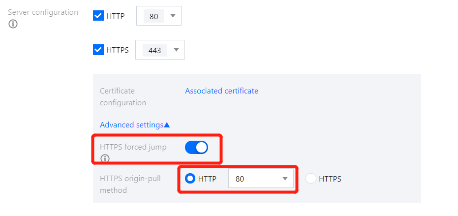 如需开启 HTTPS 强制跳转开关,需同时勾选 HTTP 和 HTTPS 访问协议。
