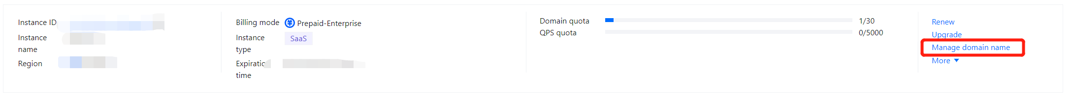 2. 在实例列表页面,选择需要添加域名的实例,在右侧单击所属实例的域名接入。