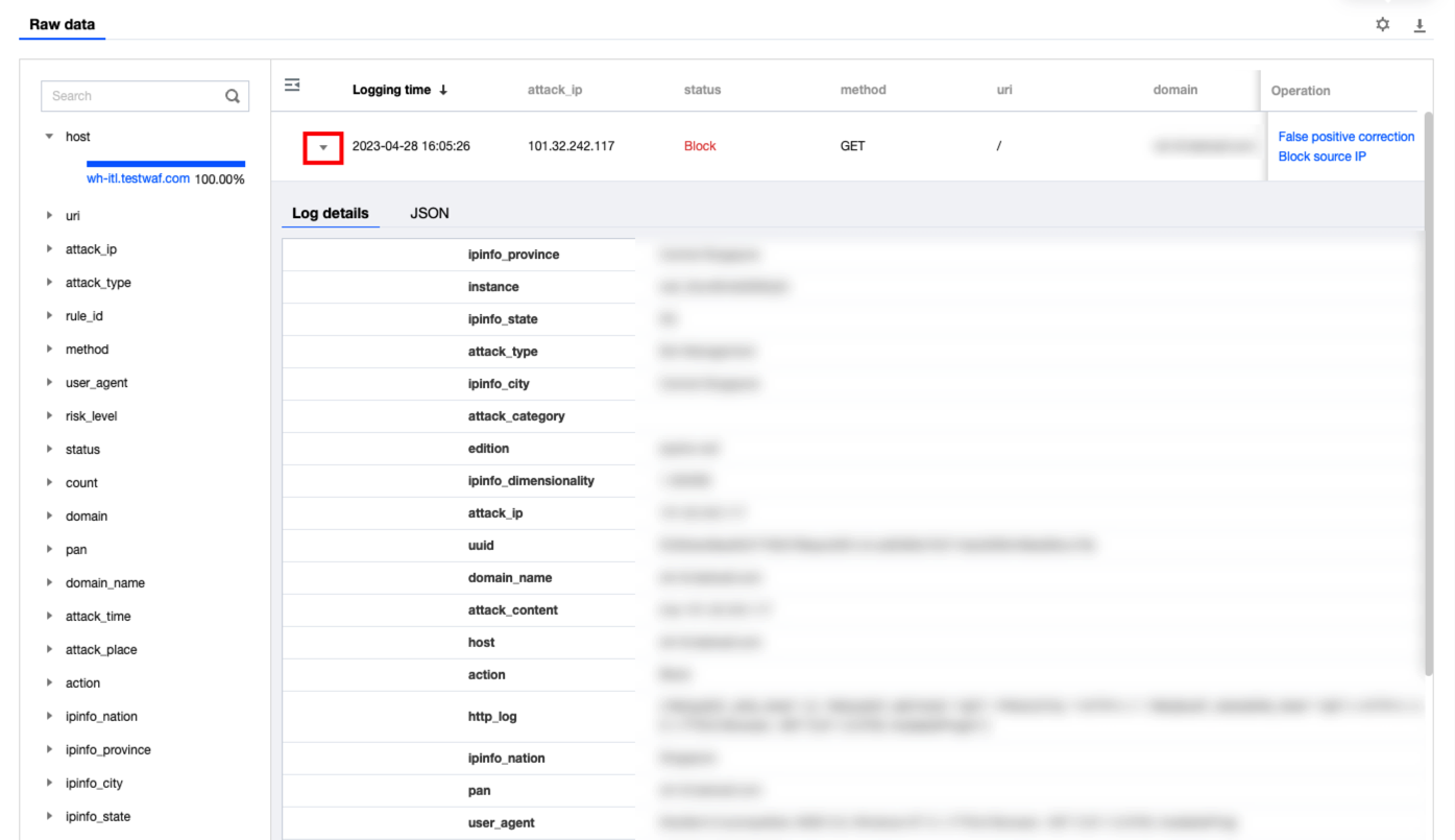 attack_ip | 攻击源 IP:客户端攻击的源 IP。 |