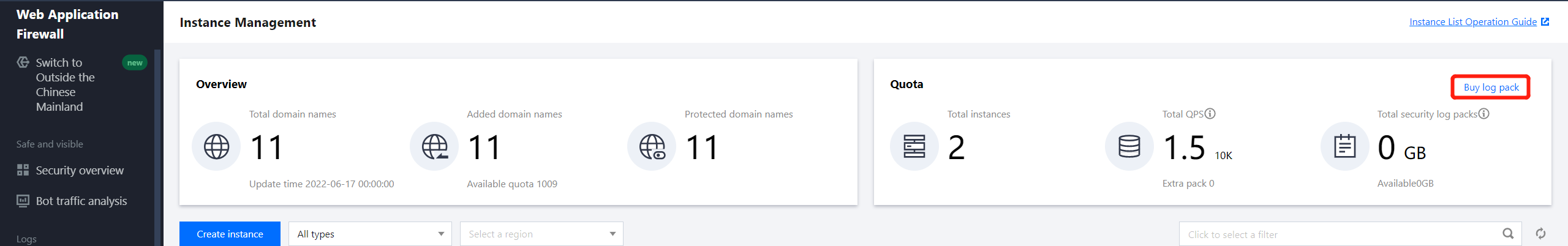 WAF 实例套餐及扩展资源