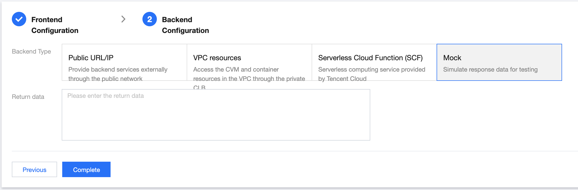 后端对接 Mock 仅能返回固定数据,建议您在测试过程中使用,不建议在真实业务场景中使用。