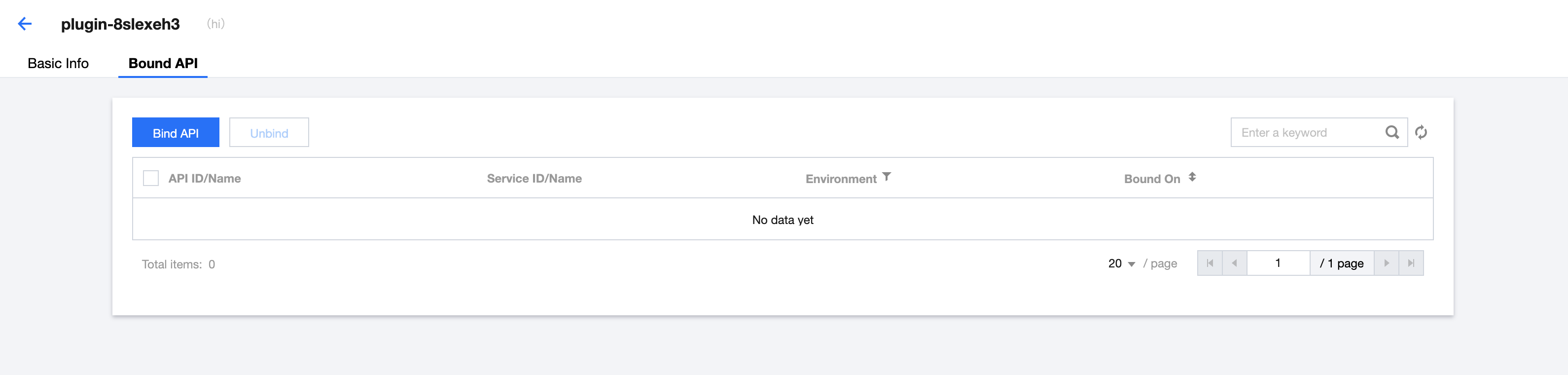 1. 在列表中选中刚刚创建好的插件,单击操作列的绑定 API。