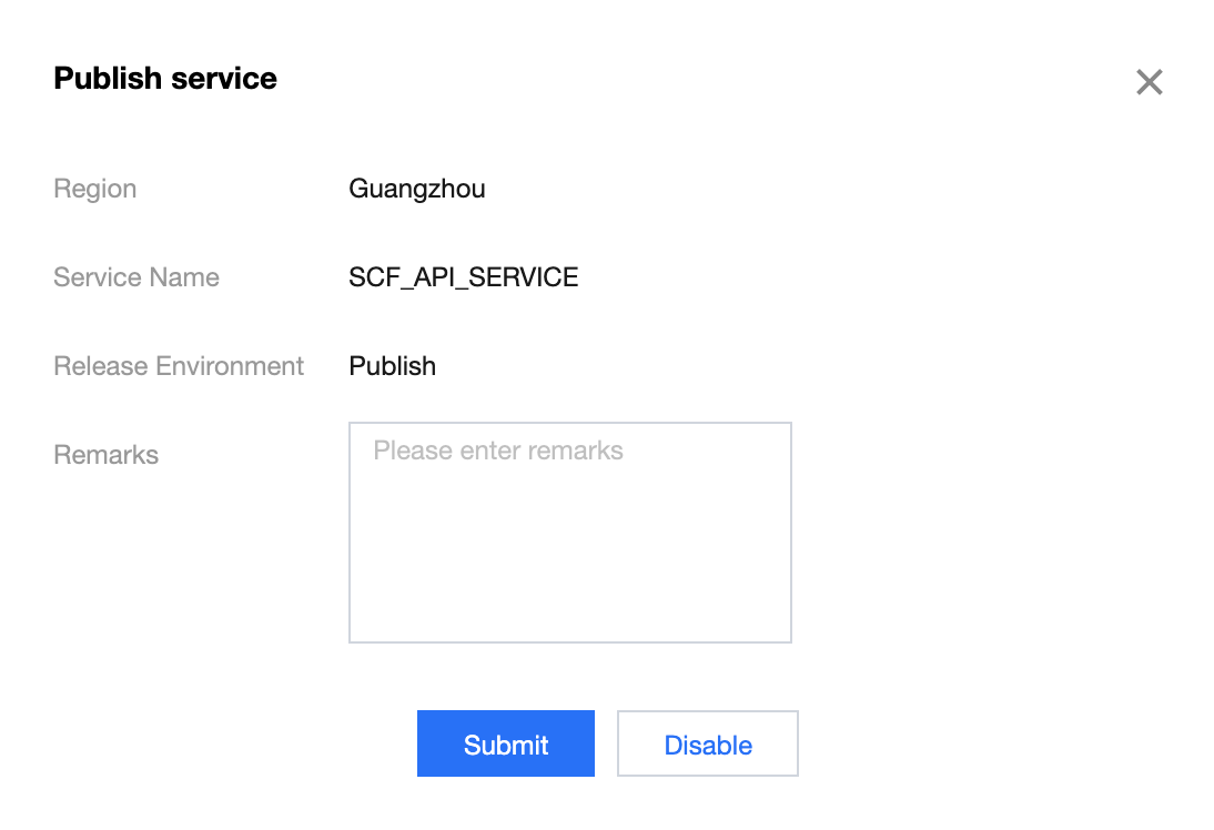 服务创建后默认处于未发布状态,只有发布服务后才能正常访问。在完成服务内 API 的配置后,即可以进行发布。