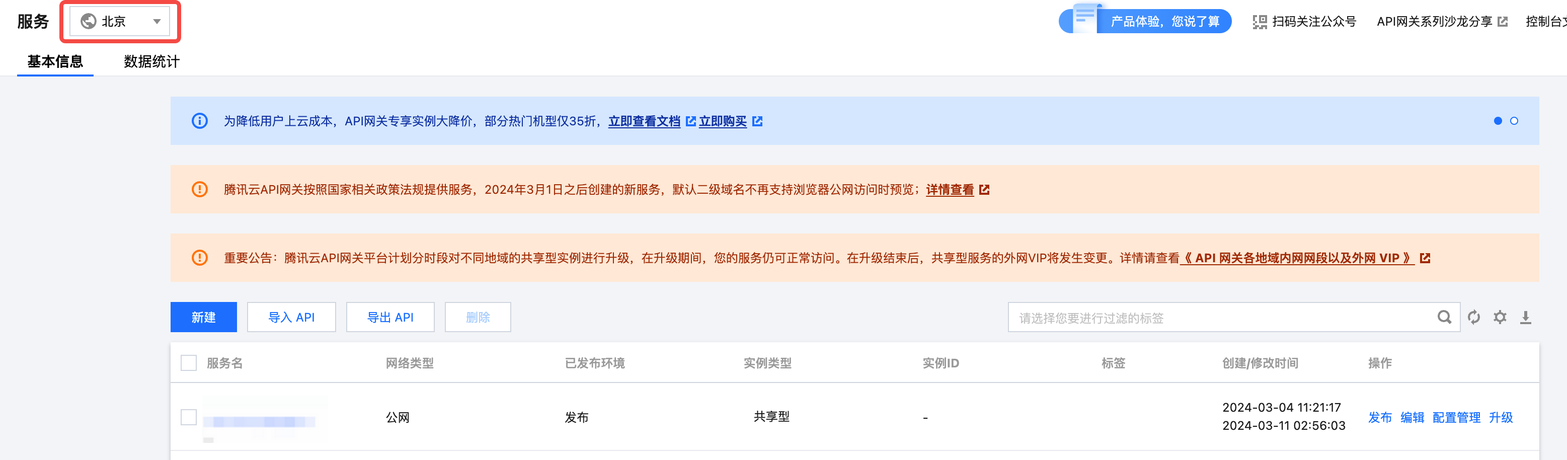在北京地域导入 API
