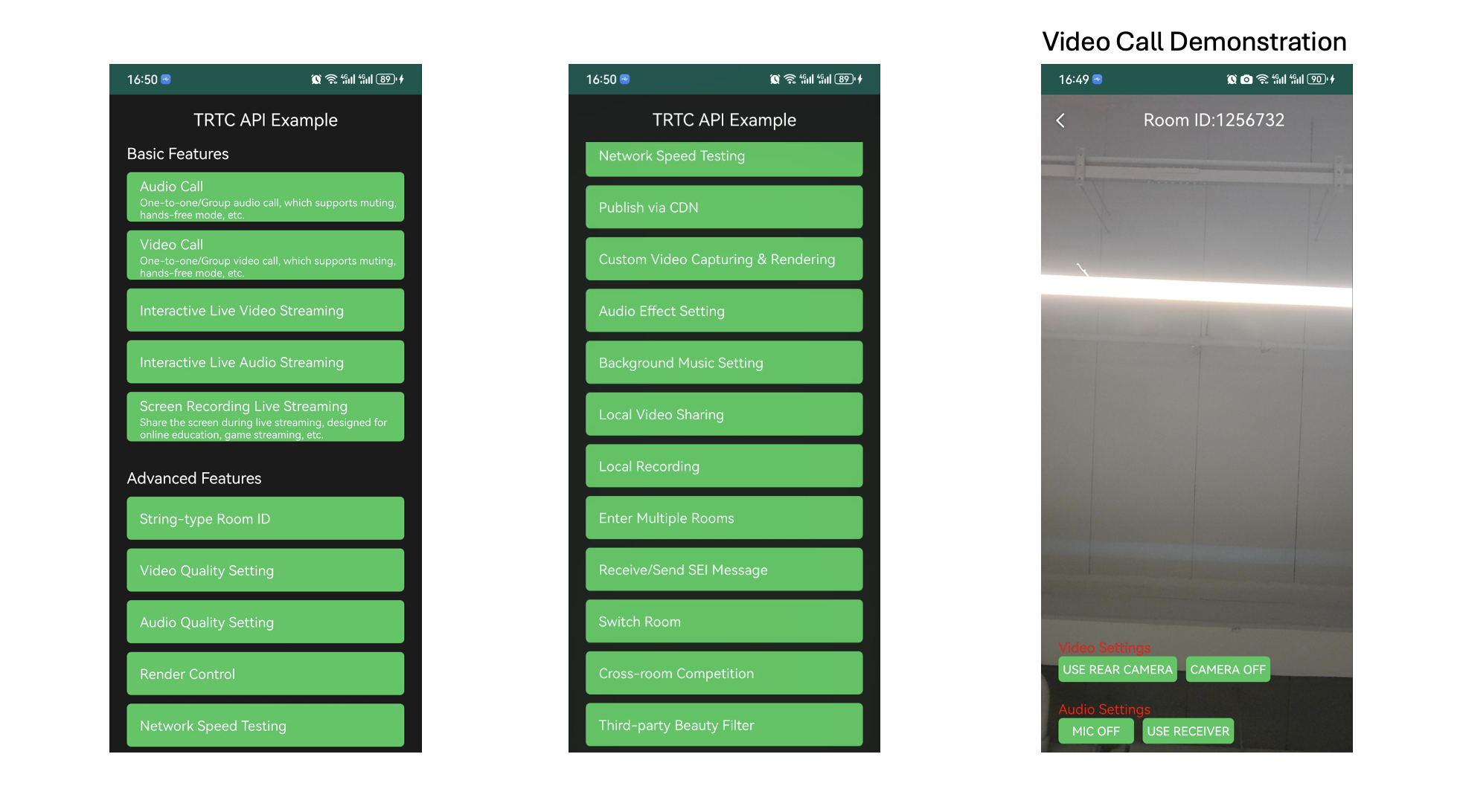 配置完成后,使用 Android Studio(3.5及以上的版本)打开源码工程 TRTC-API-Example,单击运行即可体验。
