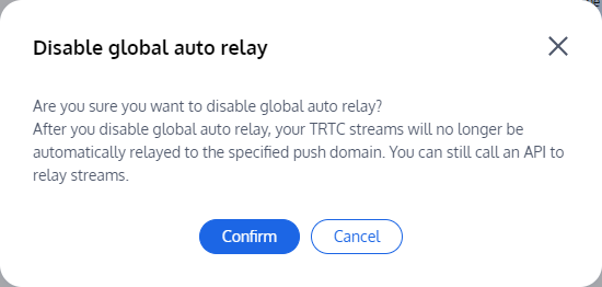 3. 在弹出的关闭全局自动转推功能弹框中,仔细阅读风险说明;若确认关闭,单击 Confirm 即可。