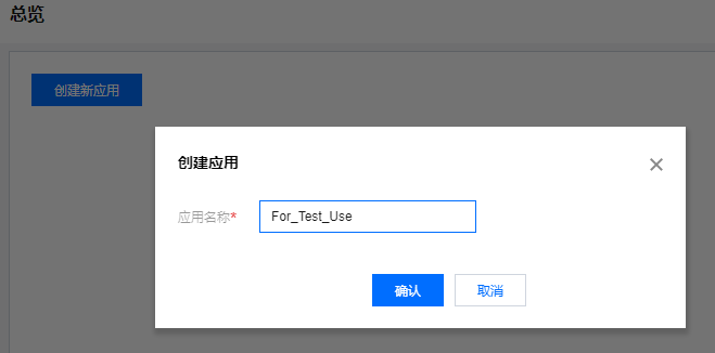 2. 输入您的应用名称,单击 确认 即可完成创建。