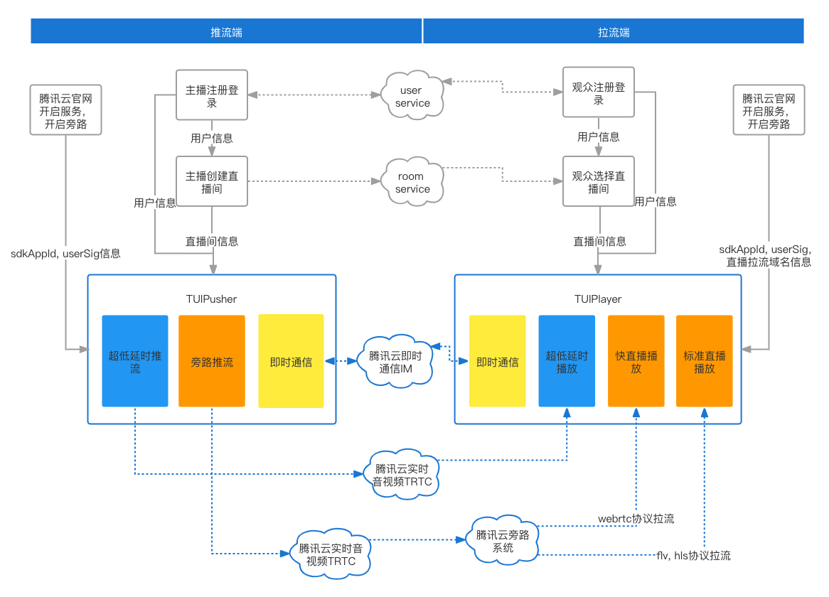 TUIPusher & TUIPlayer 基于腾讯云实时音视频和即时通信服务进行开发。实时音视频 TRTC 应用与 即时通信 IM 应用的 SDKAppID 一致,才能复用账号与鉴权。