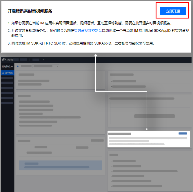 2. 在该应用的基础配置页,开通腾讯云实时音视频服务。
