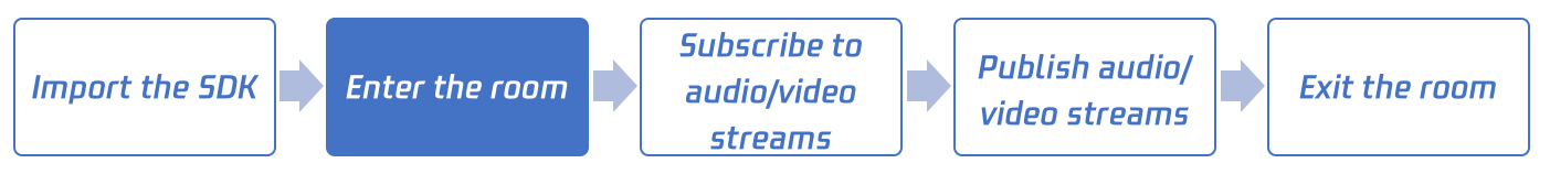 try {await trtc.enterRoom({ roomId: 8888, scene:'rtc', sdkAppId, userId, userSig });console.log('进房成功');} catch (error) {console.error('进房失败 ' + error);}