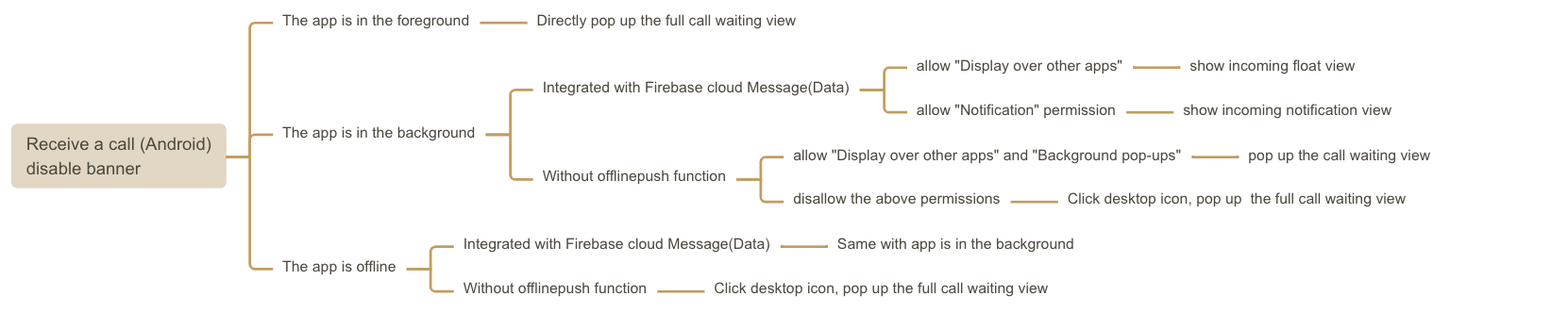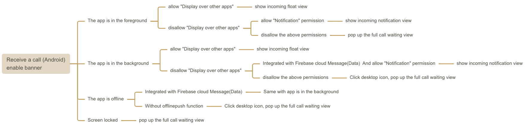开启后,被叫端的来电策略如下所示,只要开启悬浮窗权限,就能尽可能的展示来电横幅。