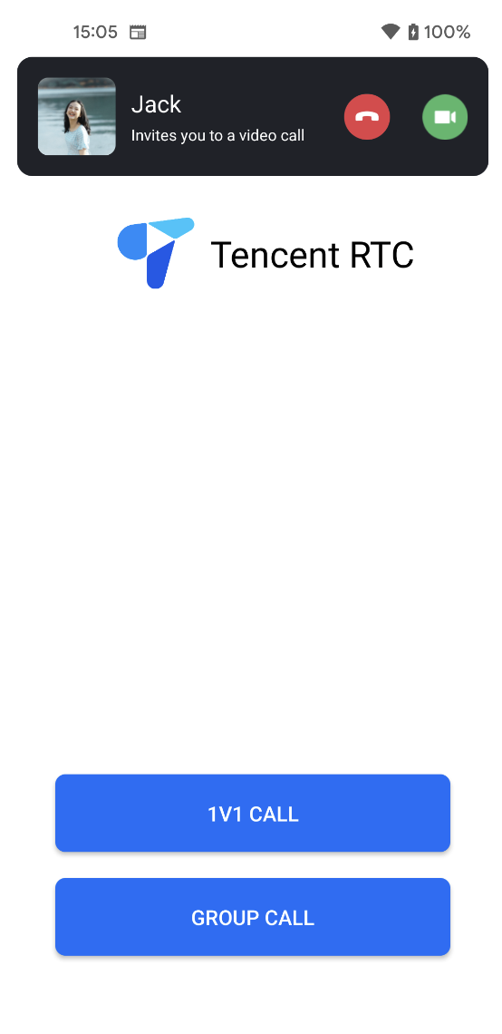 为使 TUICallKit 适应不同的业务需求,增加产品特色,提升用户的使用体验,TUICallKit 2.3 及以上版本(发布日志),优化收到来电后的通话页面显示弹出策略,详情如下所示: 1. 如果您想要被叫端收到邀请时,尽量去拉起全屏通话界面,那么您可以集成 tuicallkit-kt 代码。默认情况下,被叫端的来电显示策略如下: 2. 如果您想在被叫端收到通话的时候,先展示一个横幅,然后根据需要拉起全屏通话界面,那么您可以调用以下接口开启该功能。