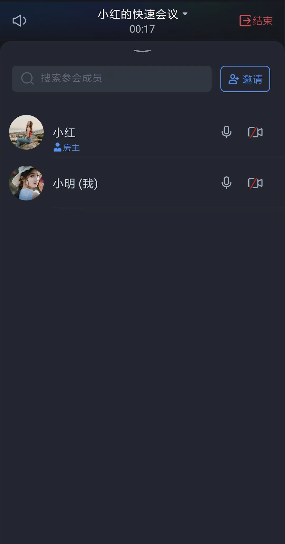 // 请替换 "123456" 为您自定义的房间号ConferenceDefine.JoinConferenceParams params = new ConferenceDefine.JoinConferenceParams("123456");Intent intent = new Intent(this, ConferenceMainActivity.class);intent.putExtra(KEY_JOIN_CONFERENCE_PARAMS, params);startActivity(intent);
