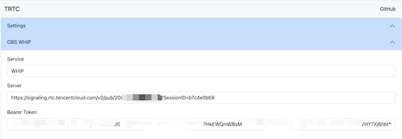 您还可以访问网址 https://tencent-rtc.github.io/obs-trtc/bearer.html?appid=2000xxx&secret=yyyyyy 来设置参数。