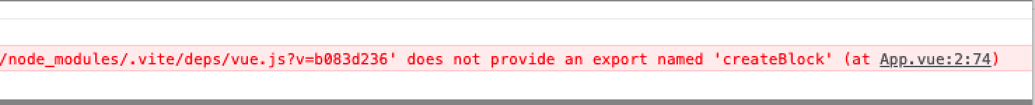 运行时报错:"does not provide an export named 'createBlock' "?