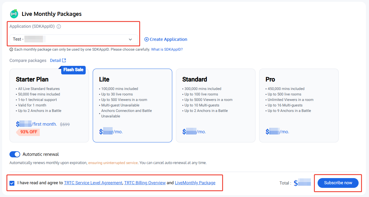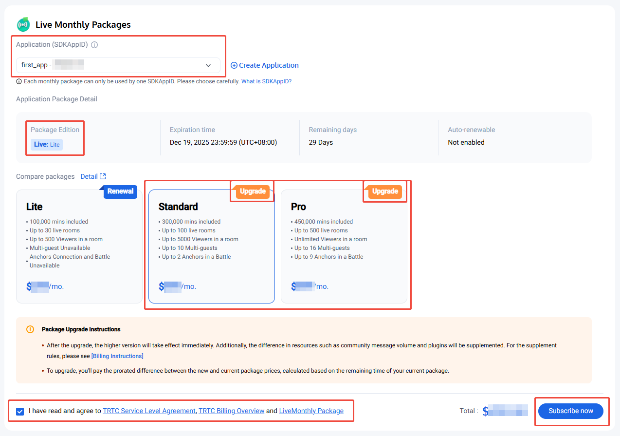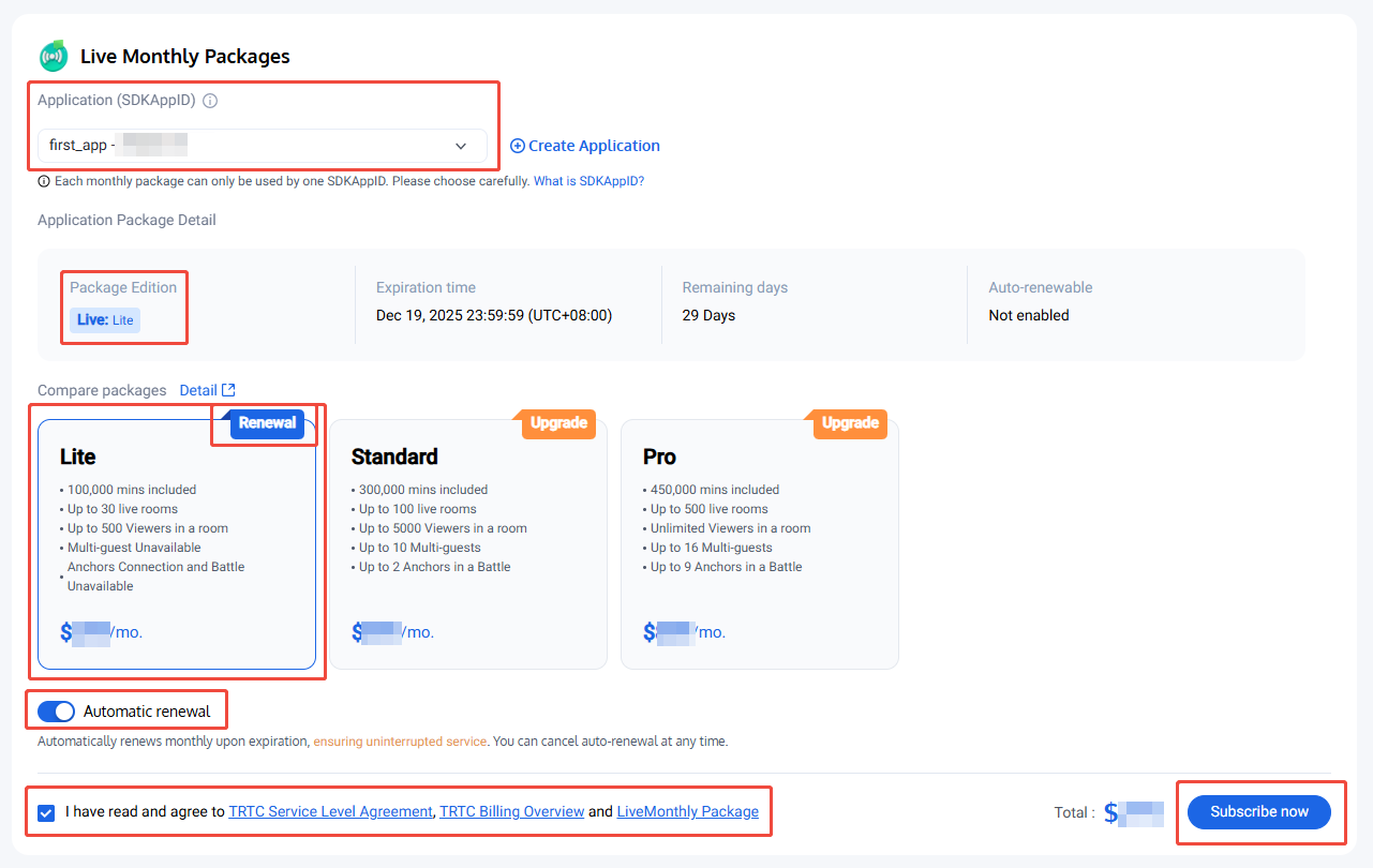 关于 TRTC 应用订阅套餐服务上线的相关说明