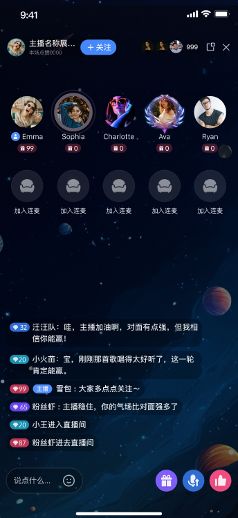 主播准备页 | 主播开播页 | 直播列表 | 观众观看页 |