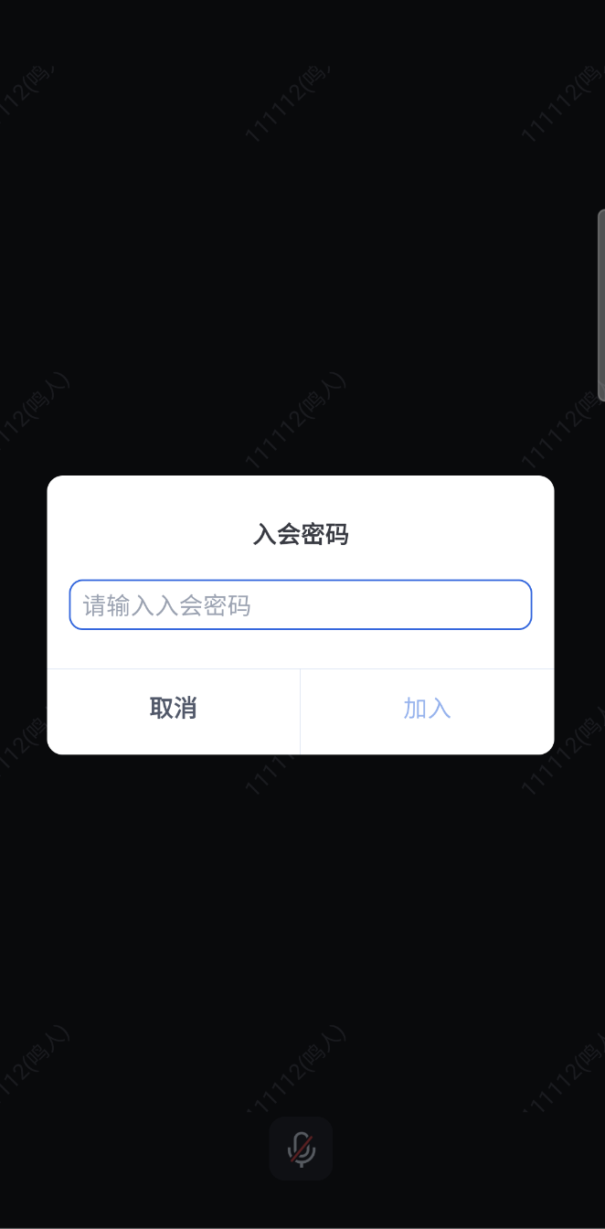 // 注意包的名称,如果您使用 vue2 版本请更改包名为 @tencentcloud/roomkit-web-vue2.7import { conference } from '@tencentcloud/roomkit-web-vue3';conference.join('123456', { // 请替换 '123456' 为您加入的房间号isOpenCamera: false,isOpenMicrophone: false,password: '123456', // 请替换 '123456' 为您进入房间的密码});