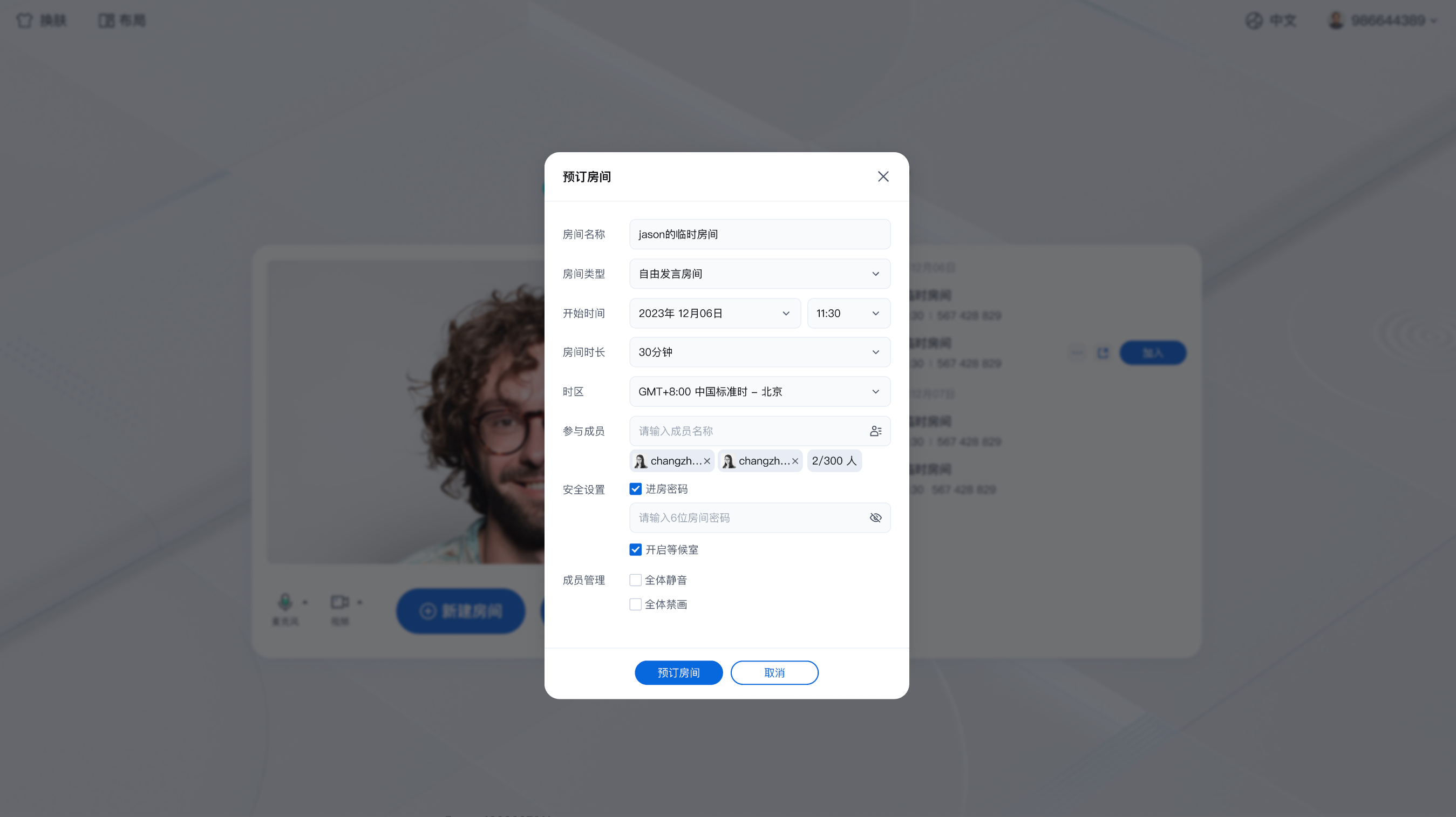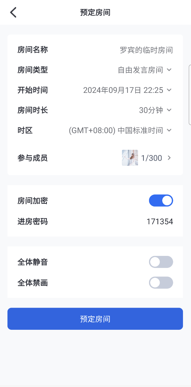 预定密码房间 | 未受邀成员加入房间输入密码 | 受邀成员可直接进入房间 |