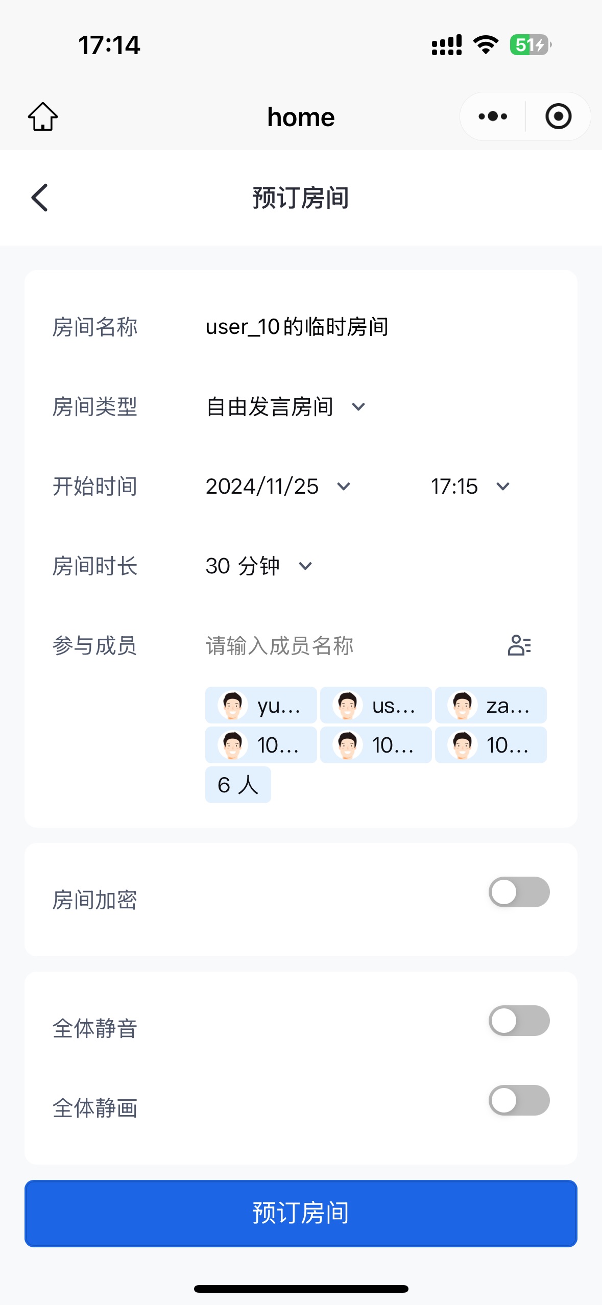 会议列表 | 预定会议参数 | 邀请会议成员 | 会议详情 |