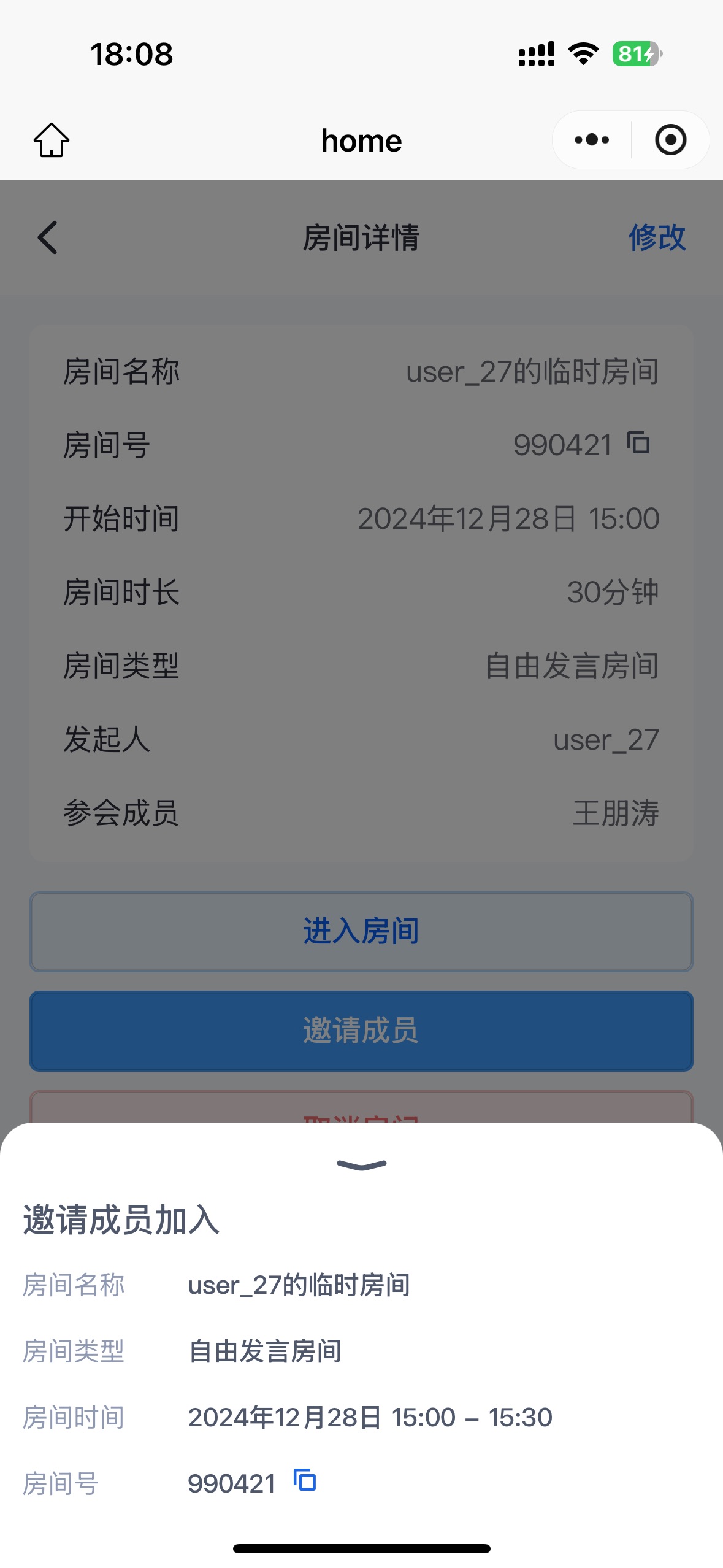 会议详情 | 邀请成员 |