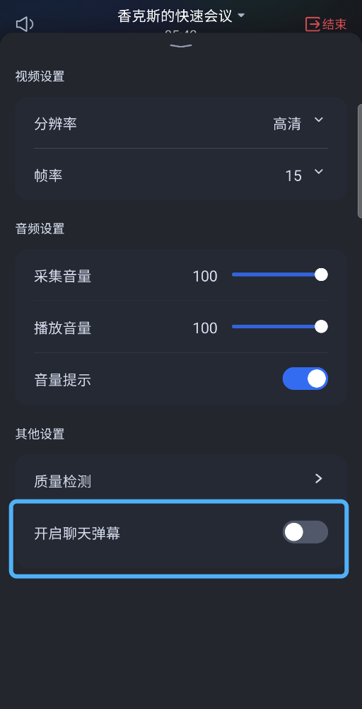弹幕聊天 | 发送表情 | 隐藏弹幕(底部栏:设置) |