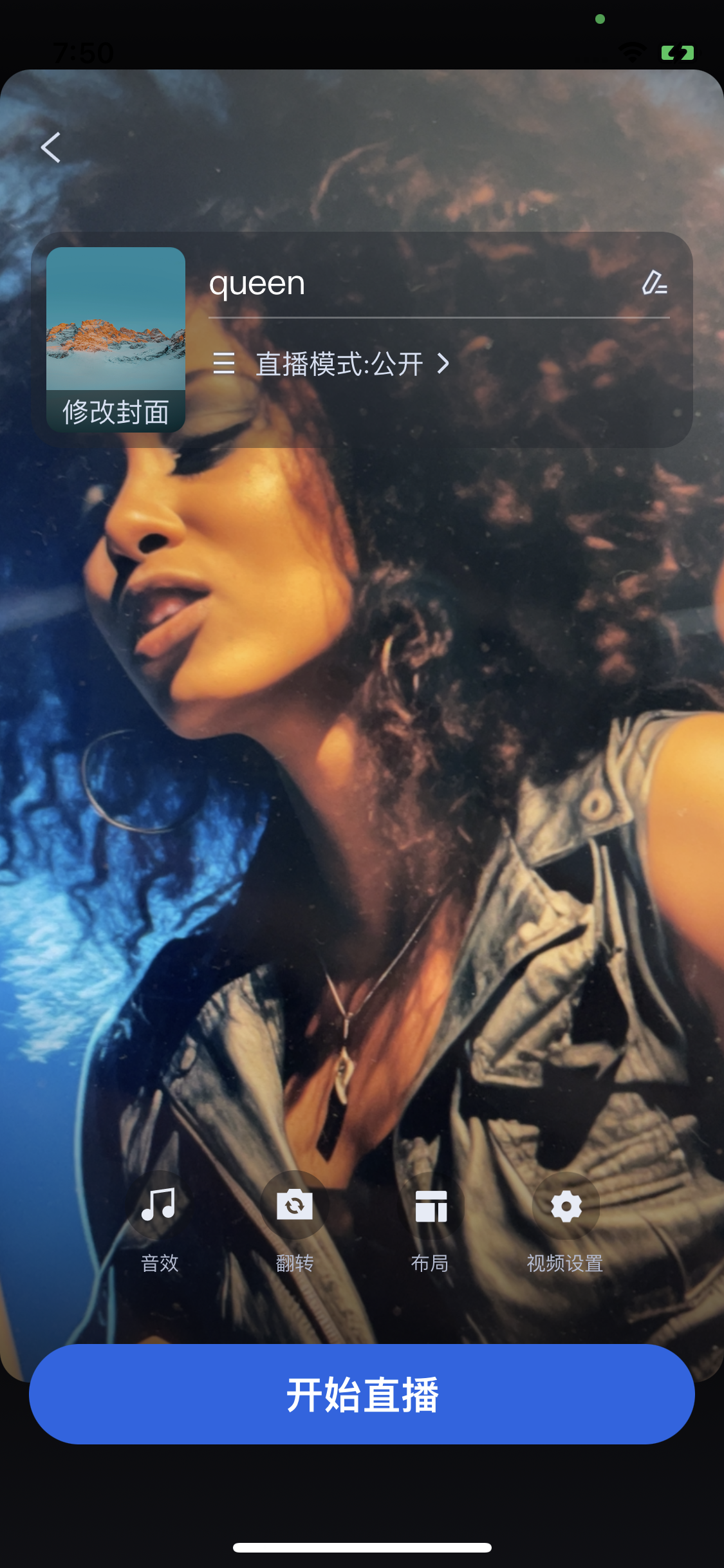 AnchorPrepareView组件已内置了摄像头预览、音效设置、布局设置、以及其它功能设置,您需创建并加载主播开播页视图,具体示例代码如下:// YourAnchorPrepareViewController 代表您加载主播开播页的视图控制器class YourAnchorPrepareViewController: UIViewController {// 1. 声明创建 LiveCoreView 实例private let coreView = LiveCoreView()// 2. 懒加载 AnchorPrepareViewprivate lazy var prepareView: AnchorPrepareView = {// 3. AnchorPrepareView 初始化时传入 coreView 实例对象let view = AnchorPrepareView(coreView: coreView)return view}()public override func viewDidLoad() {super.viewDidLoad()// 4. 将 prepareView 添加到视图上view.addSubview(prepareView)prepareView.snp.makeConstraints { make inmake.edges.equalToSuperview()}}}