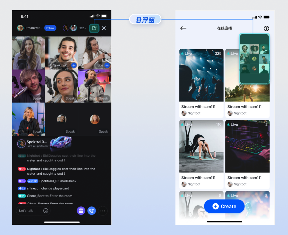 直播观看 | 互动连麦 | 直播信息 | 直播互动 |