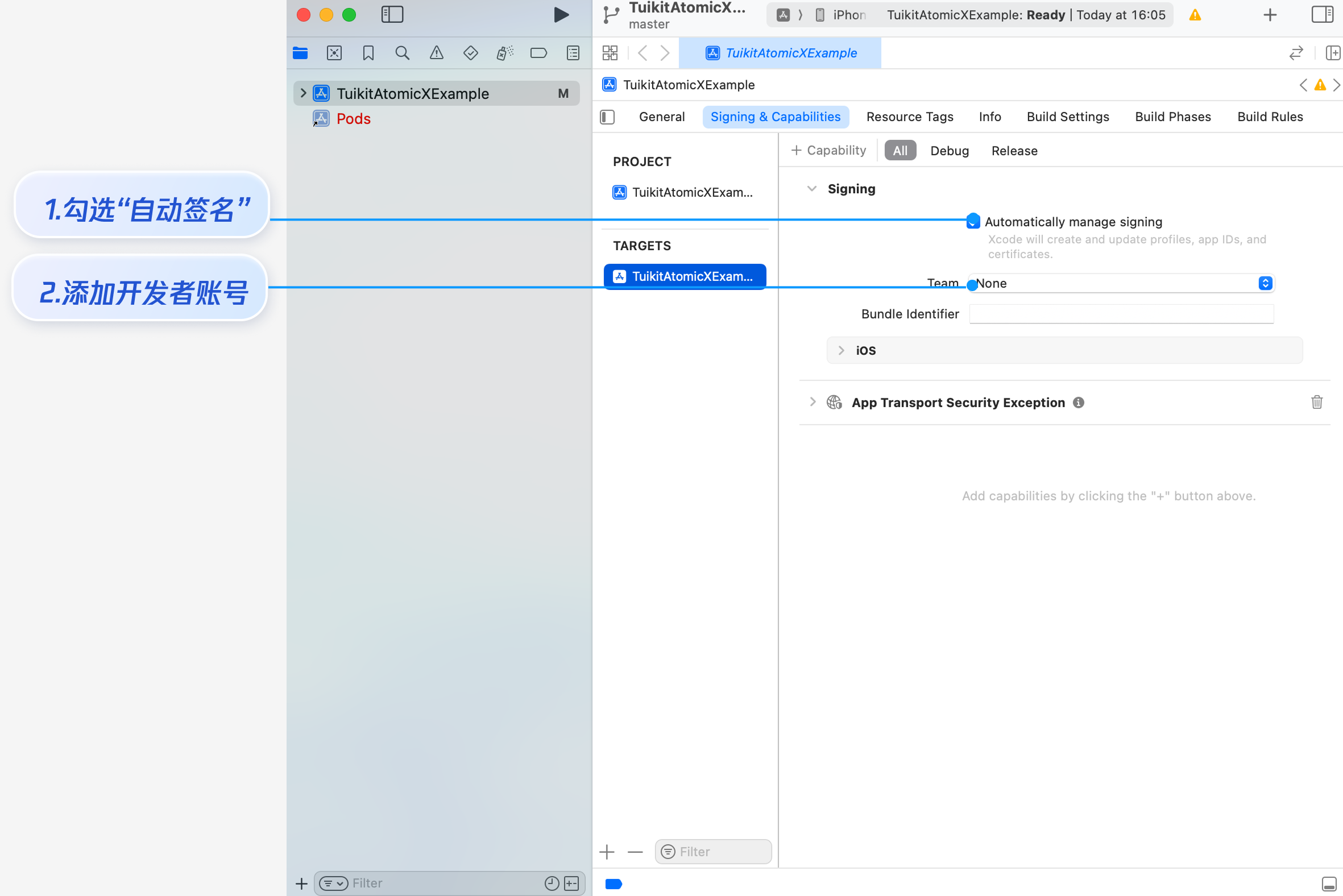 TUIKit_ReactNative/application/src/debug/UserSigGenerator.ts文件,输入准备工作中激活服务时获得的 SDKAppID 和 SDKSecretKey:// Your SDKAppIDexport const sdkAppID = 0;// Your SDKSECRETKEYconst SDKSECRETKEY = "";