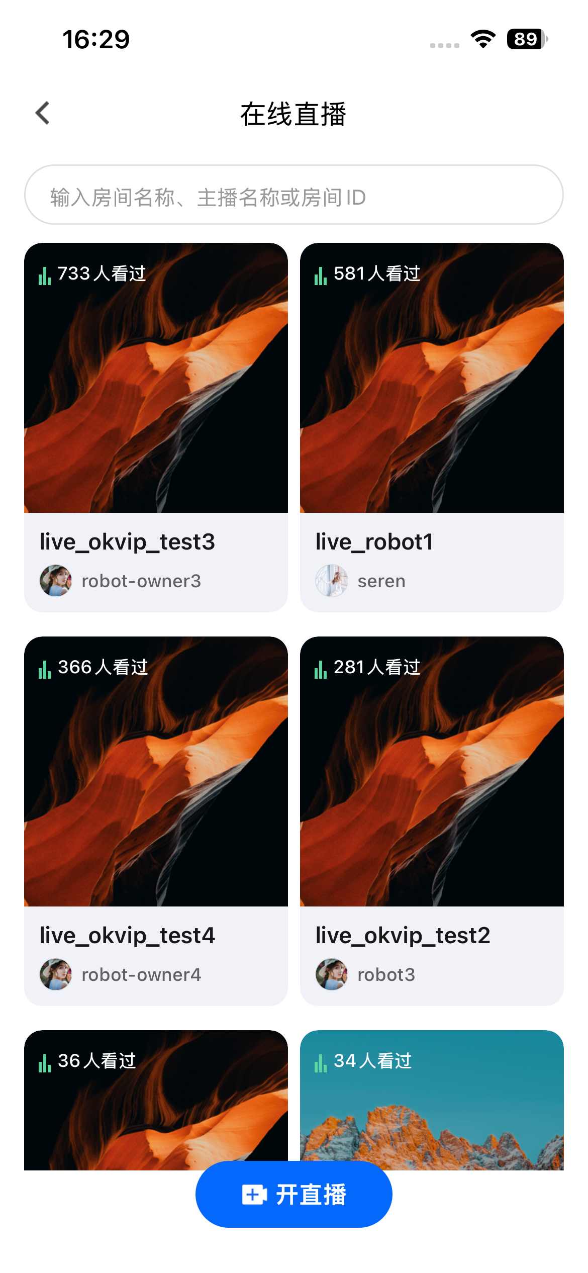 直播列表页 | 礼物选择页 | 观众观看页 |