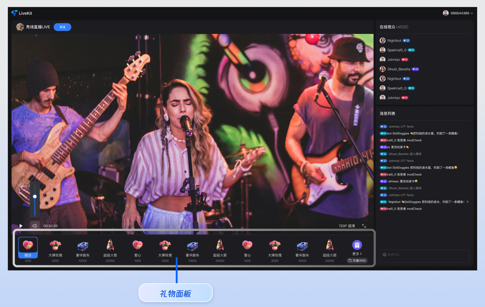 import React from "react";import { LiveGift } from "tuikit-atomicx-react";import styles from "./GiftPanel.module.scss";const GiftPanel: React.FC = () => {return (<div className={styles.livePlayer__giftPanel}><LiveGift /></div>)};export default GiftPanel;