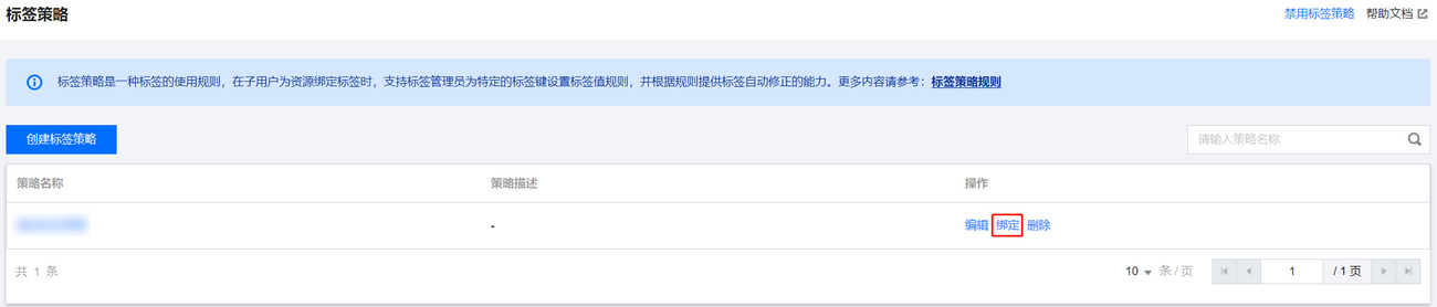 1. 按需选择一个标签策略,在操作列中单击绑定