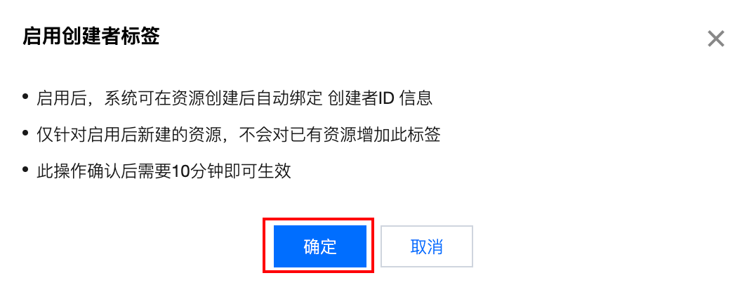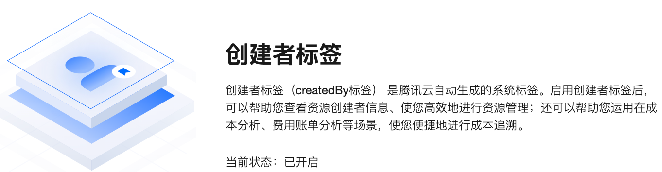 创建者标签启用后,用户在创建资源时(仅限于支持创建者标签功能的云资源),标签系统将自动为该用户的资源绑定创建者标签。