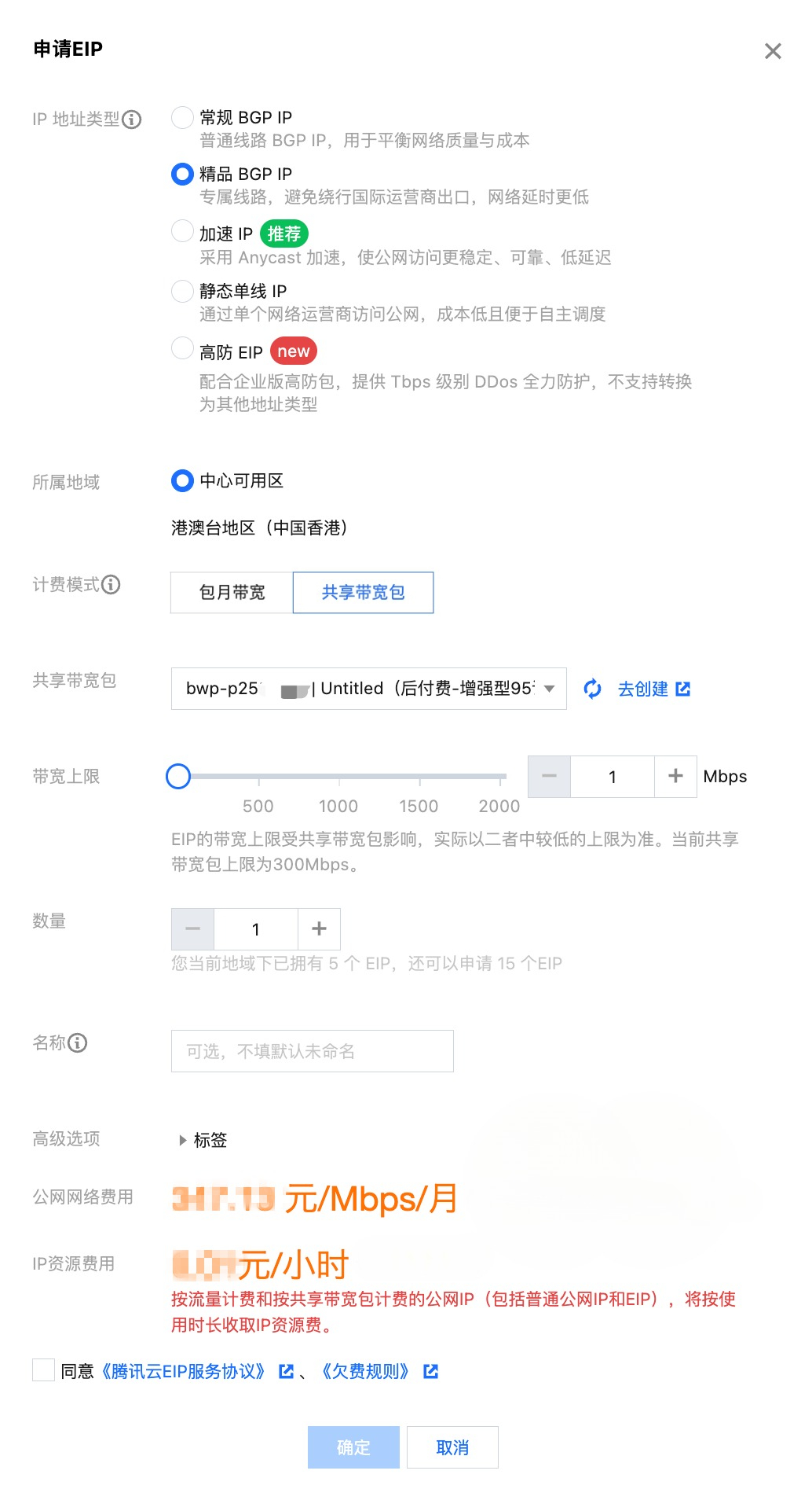 步骤二:创建精品 BGP IP 线路类型的 EIP
