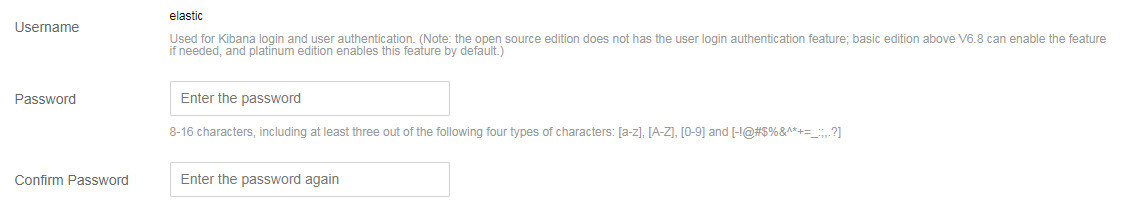 在创建腾讯云 ES 集群时,会要求用户设置默认用户 elastic 的密码,该账号和密码用于 Kibana 页面登录,若集群已开启 ES 集群用户登录认证,则此用户名和密码还会用于 ES 集群的登录认证,提供进一步的安全防护,详情如下: