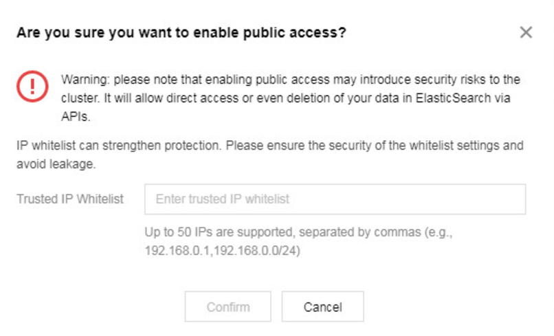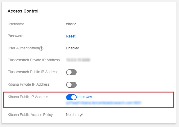 由于 Kibana 页面是通过公网访问,在进行密码校验的基础上,ES 还为 Kibana 访问提供了 IP 黑白名单功能,进一步保障用户集群的访问安全性。
