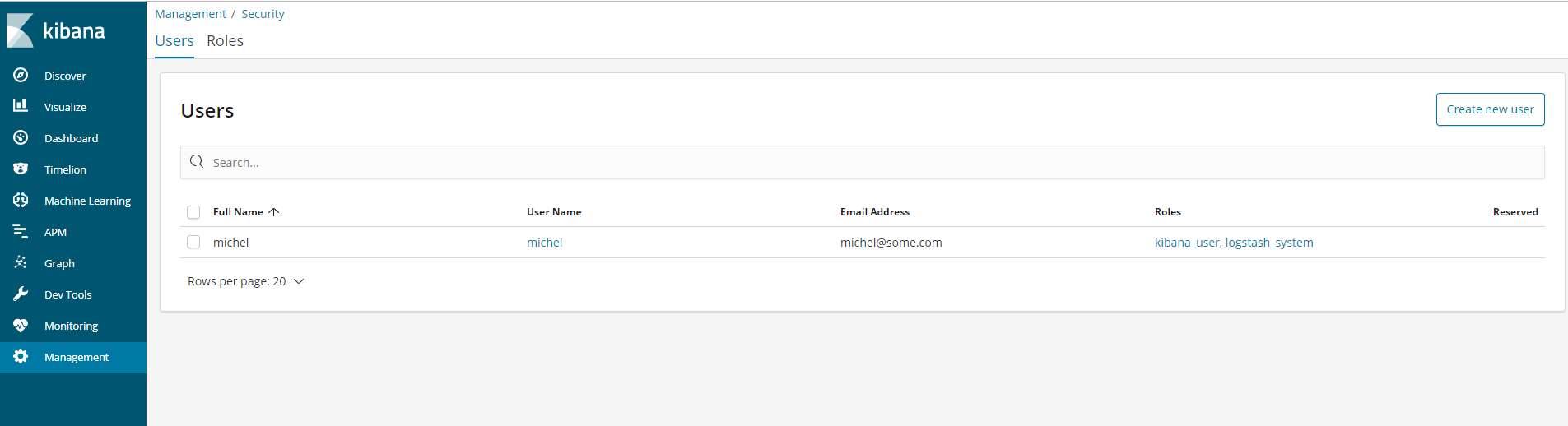 用户可以在 Kibana 的 Management > Security > Users 中创建、修改(信息修改、密码修改等)和删除具有多个角色的用户,详情如下: