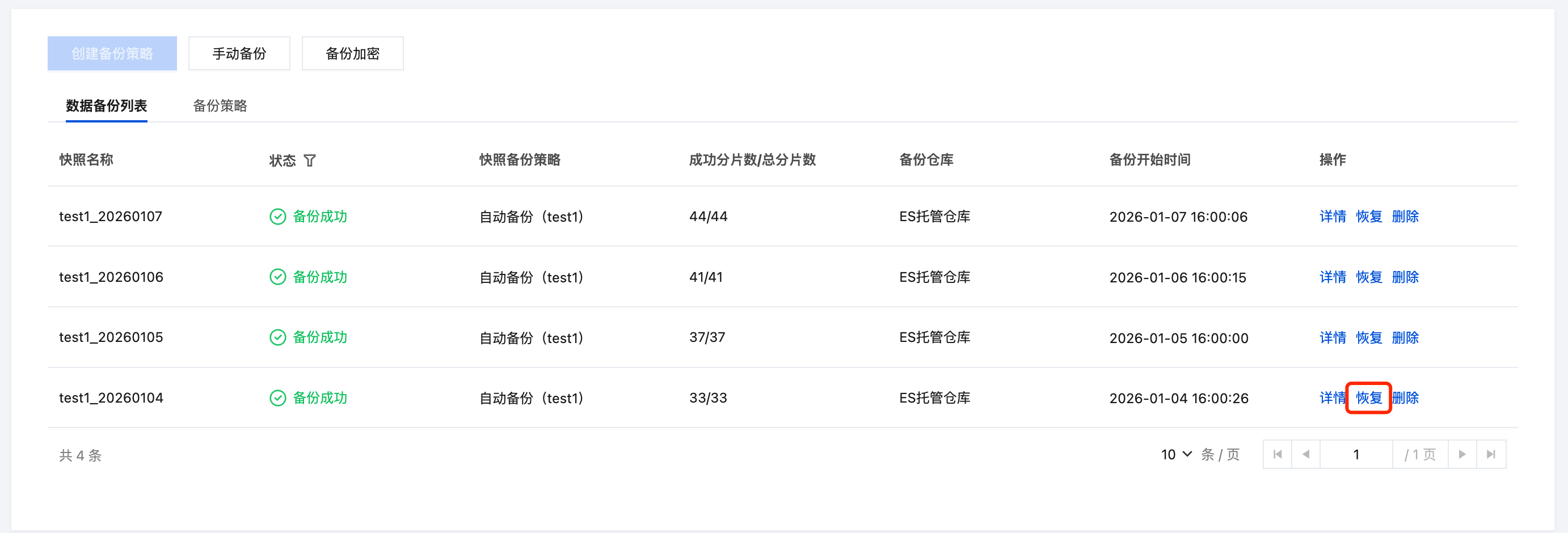 在备份数据列表中找到需要删除的快照,单击操作栏中的删除按钮,即可删除对应快照。