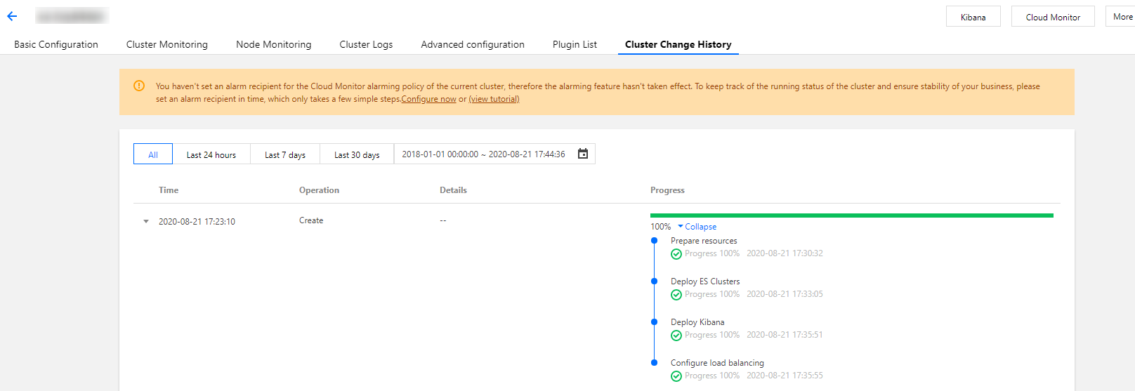 4. 开始升级后,可以在集群详情页的集群变更记录中查看升级进度。