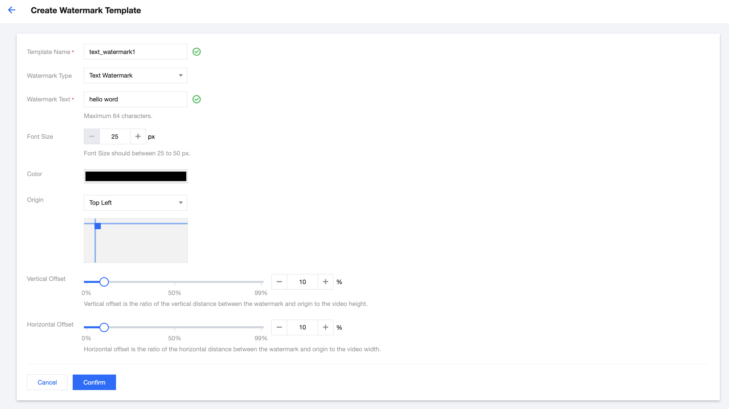 Width:叠加图片的宽度,单位为像素。支持1-4096之间的整数值,图片宽度将被拉伸到目标值。此外,当输入为空时,代表保持原图宽度。