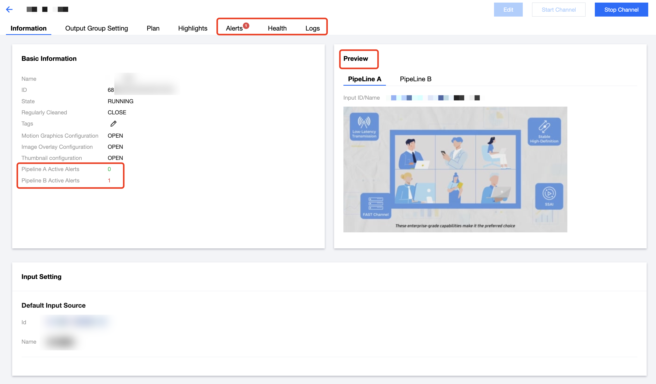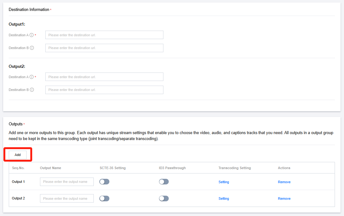 ID3:请参考 ID3说明文档,输入以 base64 编码的 ID3 元数据,最大长度为1024个字符。 此外,对于在此频道中需要透传 ID3 元数据的 Output,需要在 Output 中开启 ID3 Passthrough 开关。
