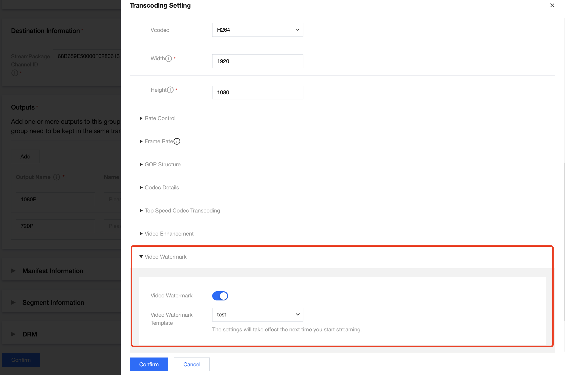 Segmentation Duration:Segment 时长。单位为90kHz,支持整数,最小值为0、最大值为1099511627775。